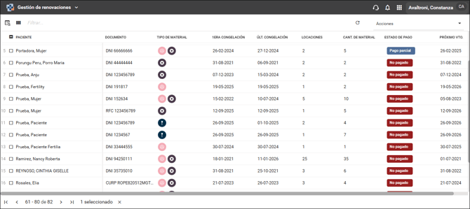 En este artículo revisaremos las funcionalidades de la pantalla "Gestión de renovaciones" para seguimiento de pagos de material criopreservado