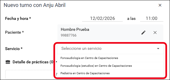 - Seleccioná la práctica, si el servicio incluye más de una